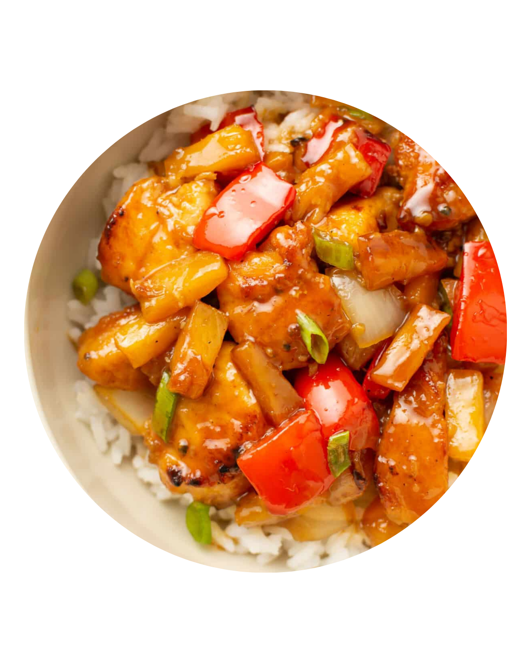 Tender chicken glazed to perfection, caramelized pineapple bringing tropical main-character energy, and fluffy rice catching every drop like it knows it’s blessed. A little heat. A little sweetness. A lot of balance.